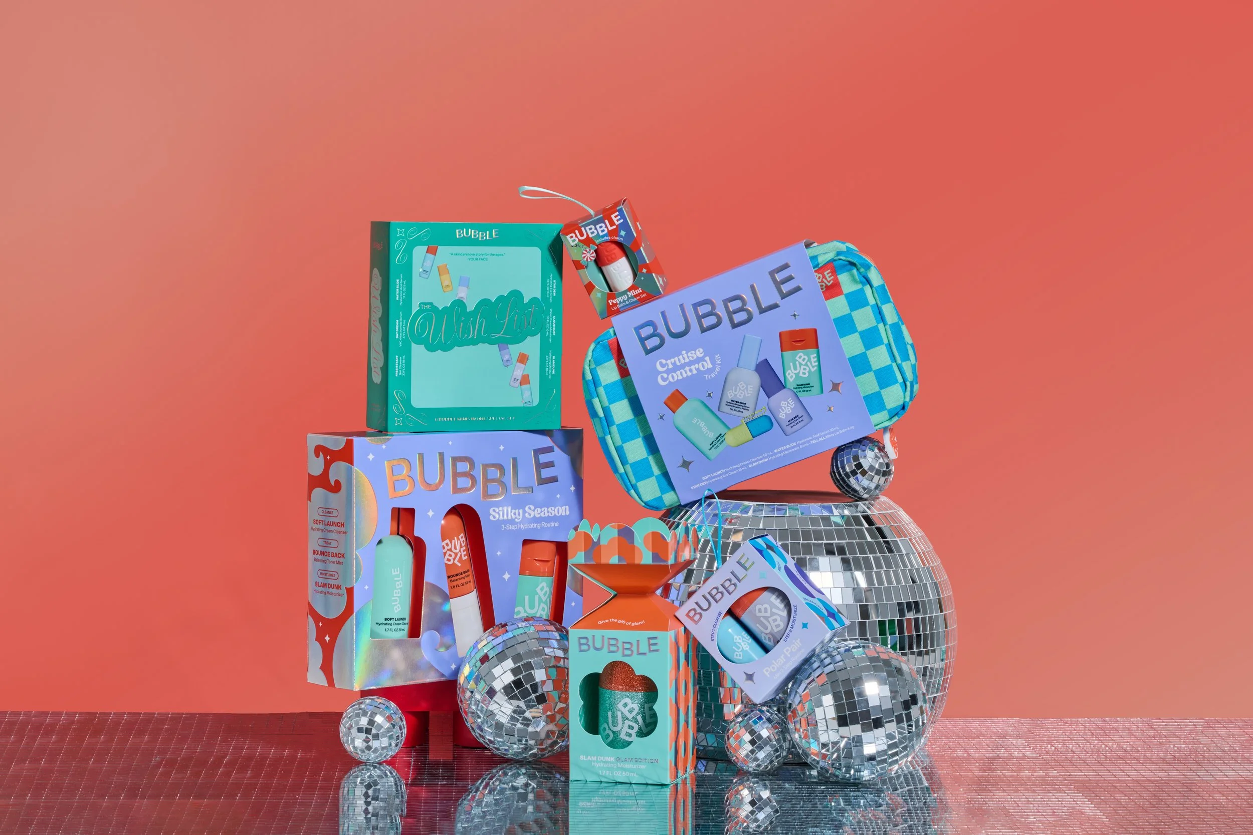 While at Bubble Skincare, I led the design and development of both primary and secondary packaging, as well as PR kits, merch, and accessories. I worked closely with the product development team to ensure all packaging was functional and compliant with formula and regulatory requirements. I partnered closely with brand designers to create packaging that clearly communicated Bubble’s brand identity through form, material, color, and graphic treatment. I regularly presented concepts and in-market solutions directly to leadership and the CEO, contributing to broader product line strategy while balancing customer expectations and retailer requirements.